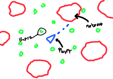 I thought about several options on how to do it, since it would be similar to Asteroids I would have to apply new mechanics to the game, so I went to buy a coffee, sat down in front of the computer and was in this position for half an hour: